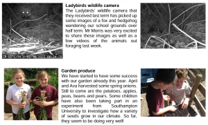 The LKS2 children are growing potatoes and sunflowers, UKS2 are growing herbs and pumpkins. The children have also dissected plants.